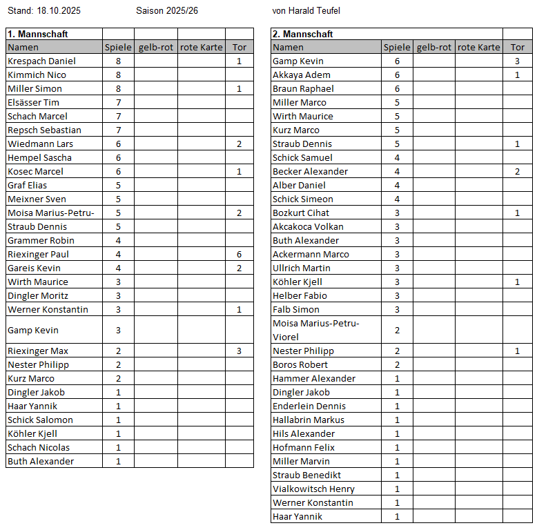 Spieleinsätze von 2001 - 2025 - Stand: 25.05.2025