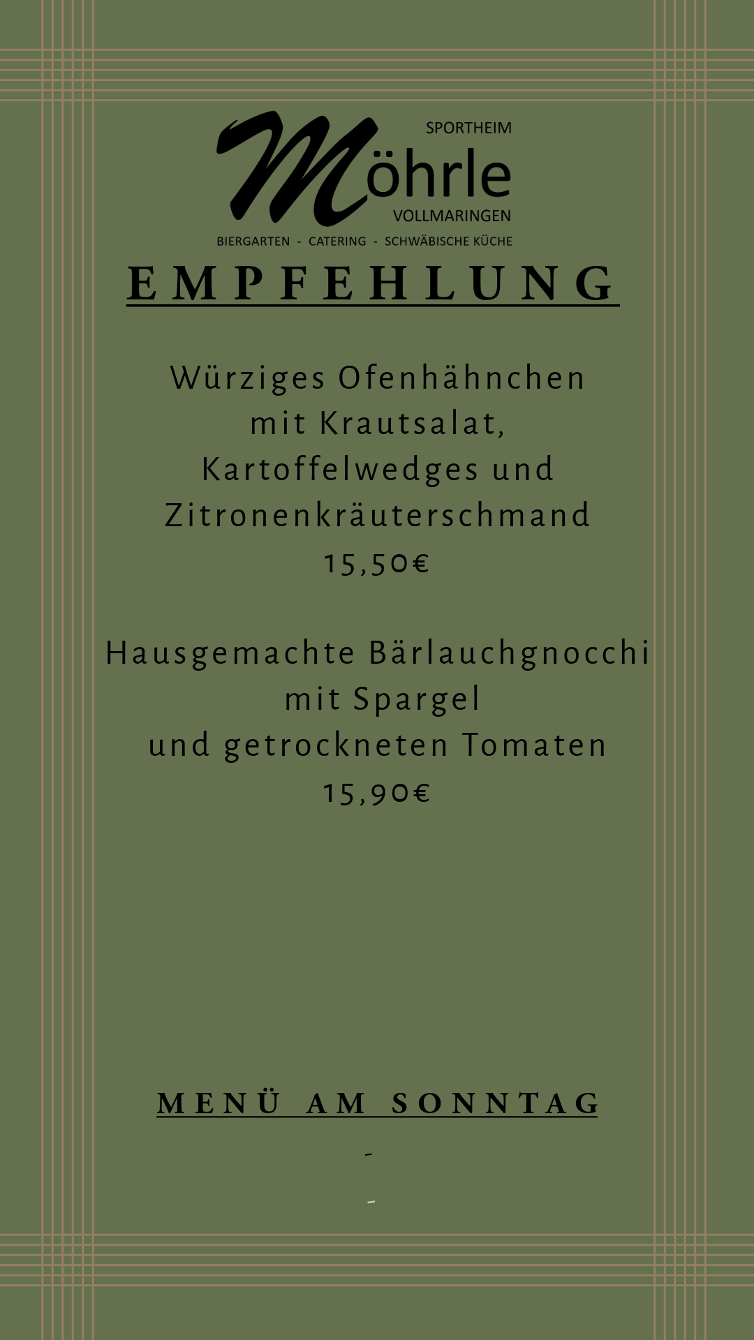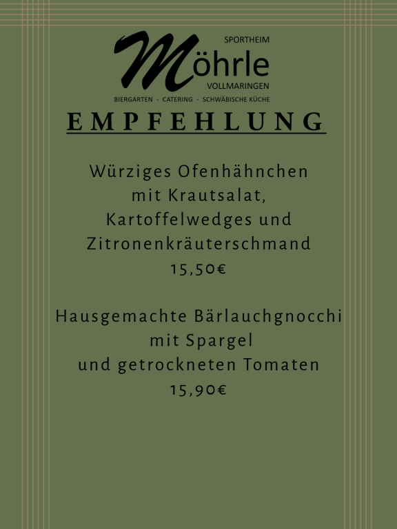 Willkommen im Möhrle. Genießen Sie unsere gut bürgliche Küche in gemütlicher Atmosphäre.