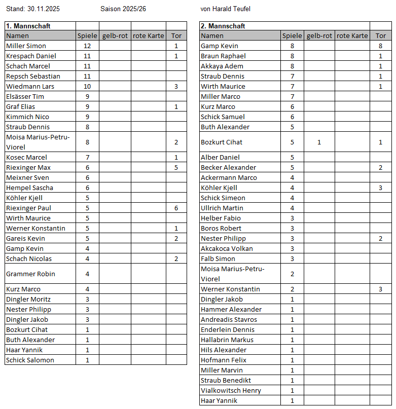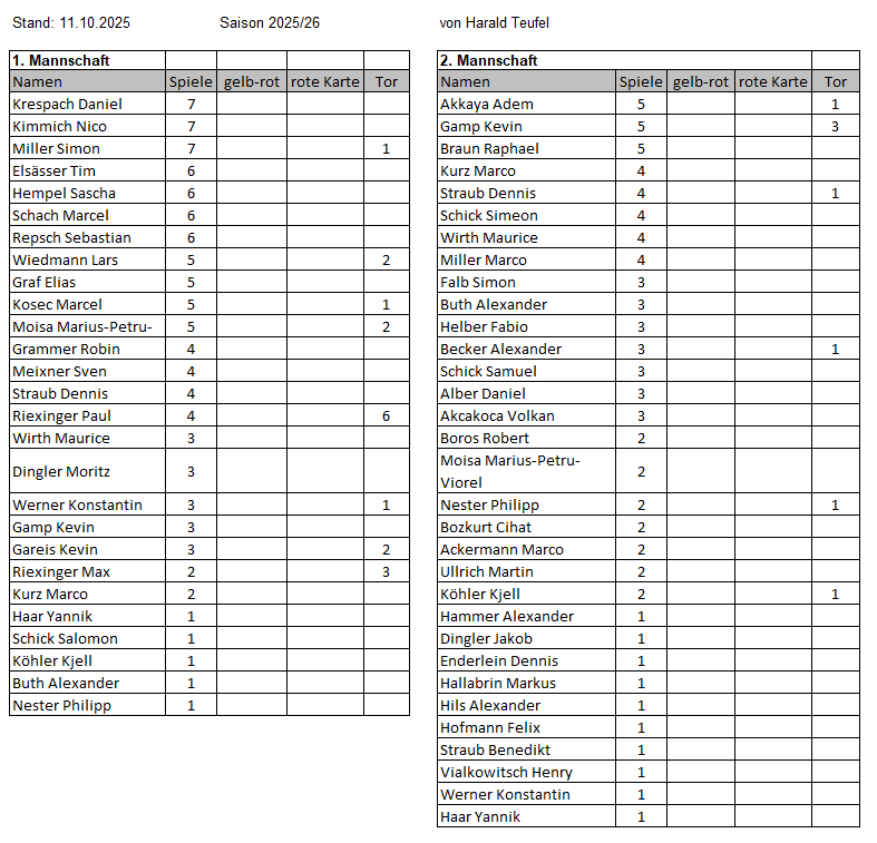 Spieleinsätze von 2001 - 2025 - Stand: 25.05.2025