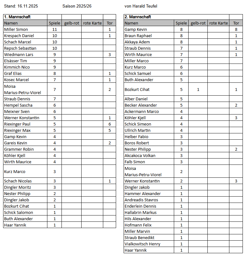 Spieleinsätze von 2001 - 2025 - Stand: 25.05.2025
