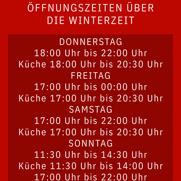 Öffnungszeiten über die Winterzeit
