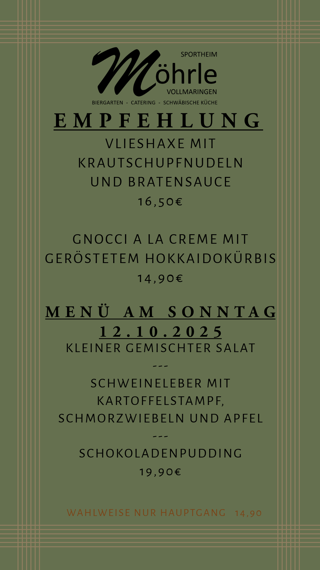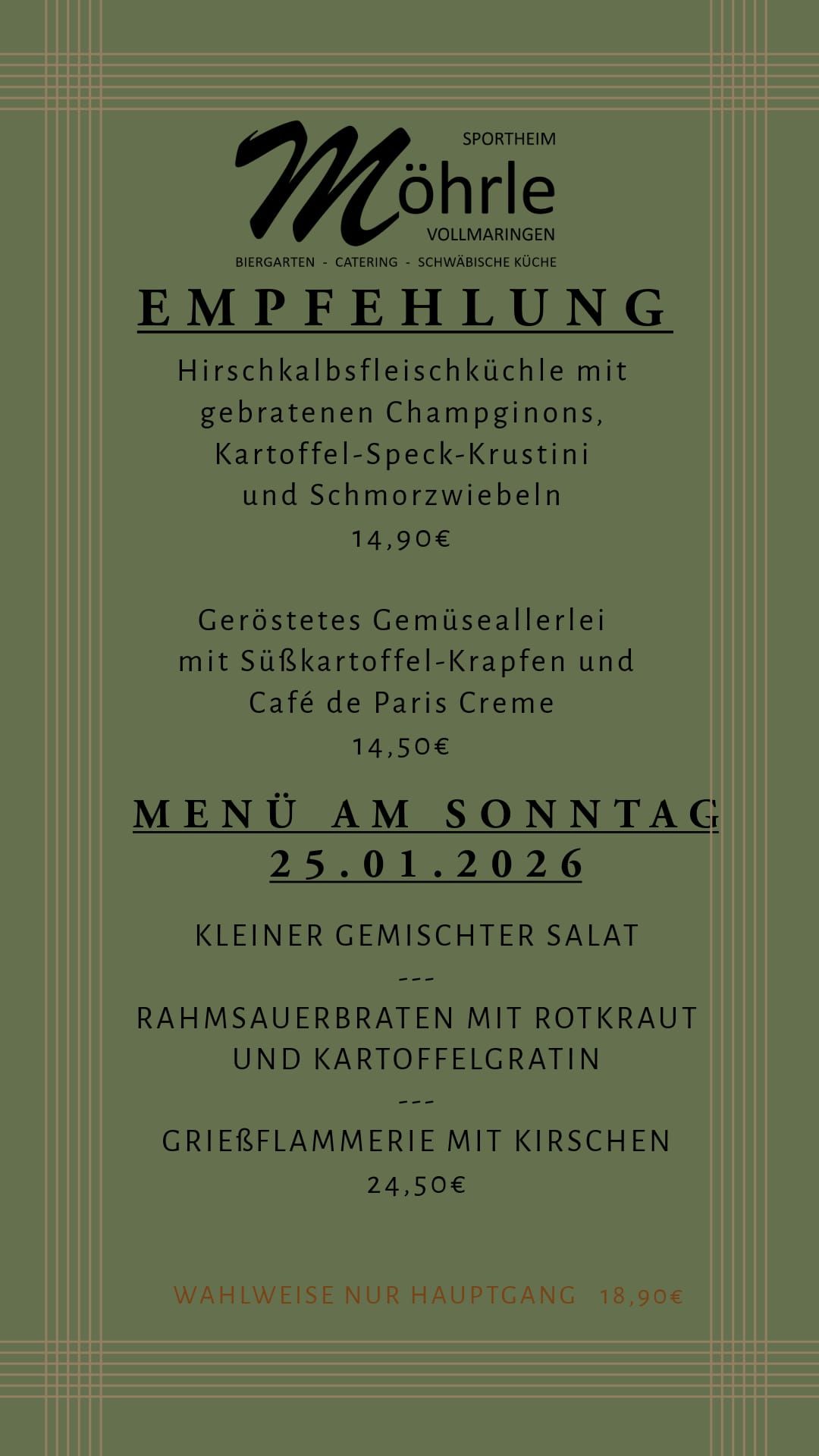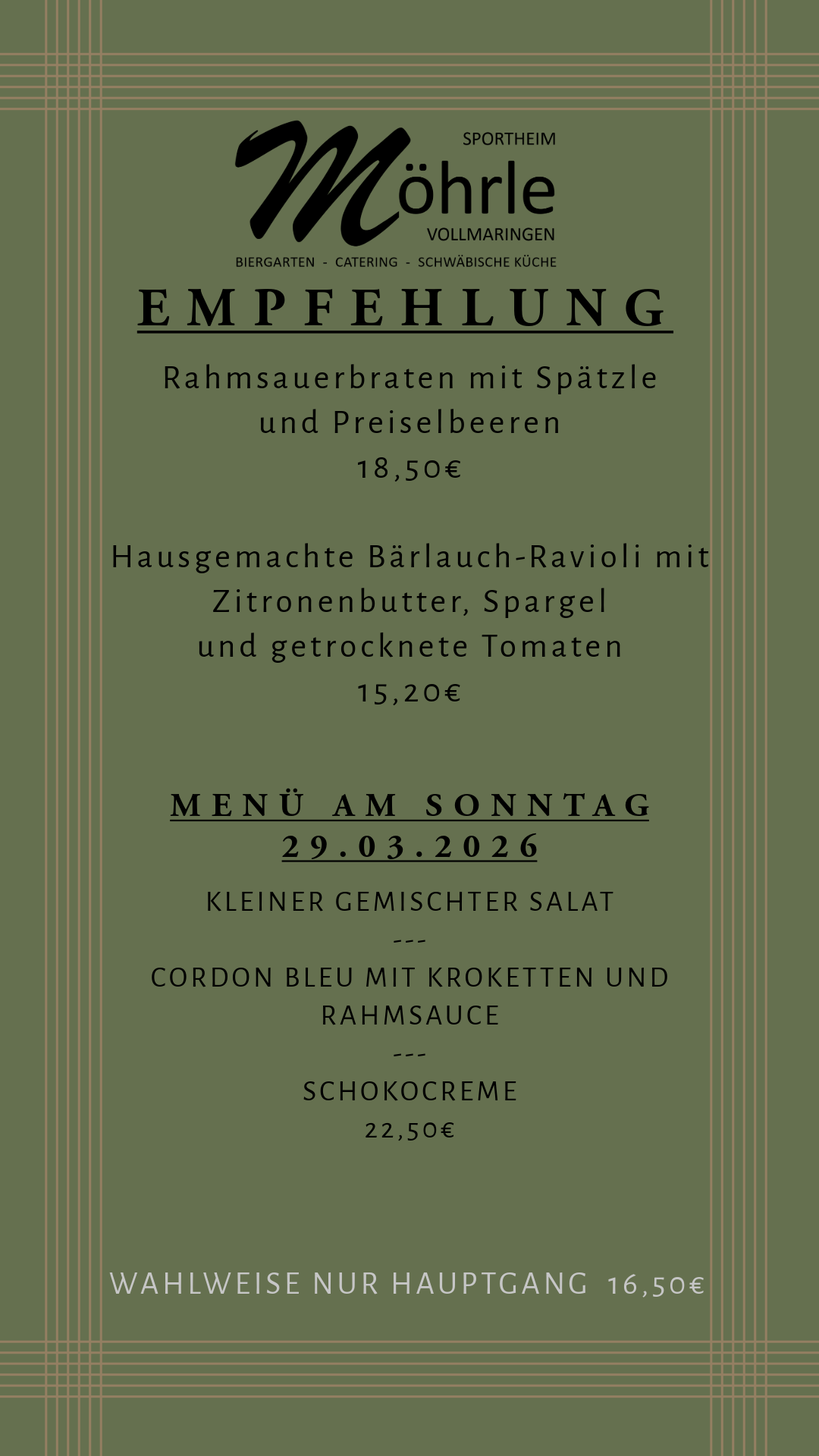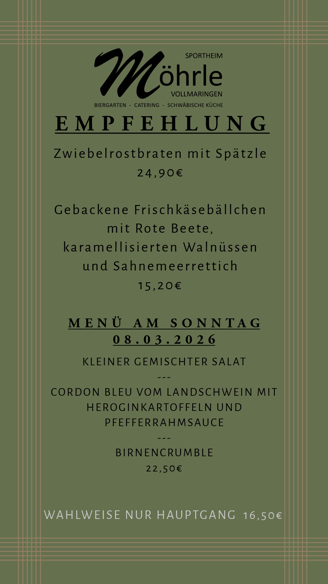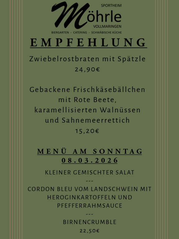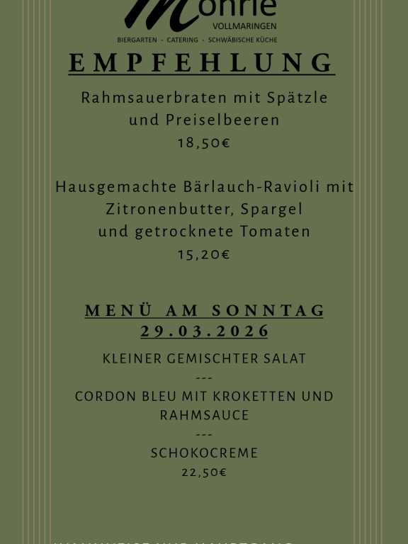 Willkommen im Möhrle. Genießen Sie unsere gut bürgliche Küche in gemütlicher Atmosphäre.