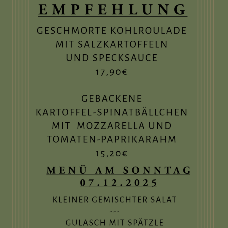 Sa: 17:00 – 22:00 Uhr - Küche: 17:00 - 20:30 Uhr